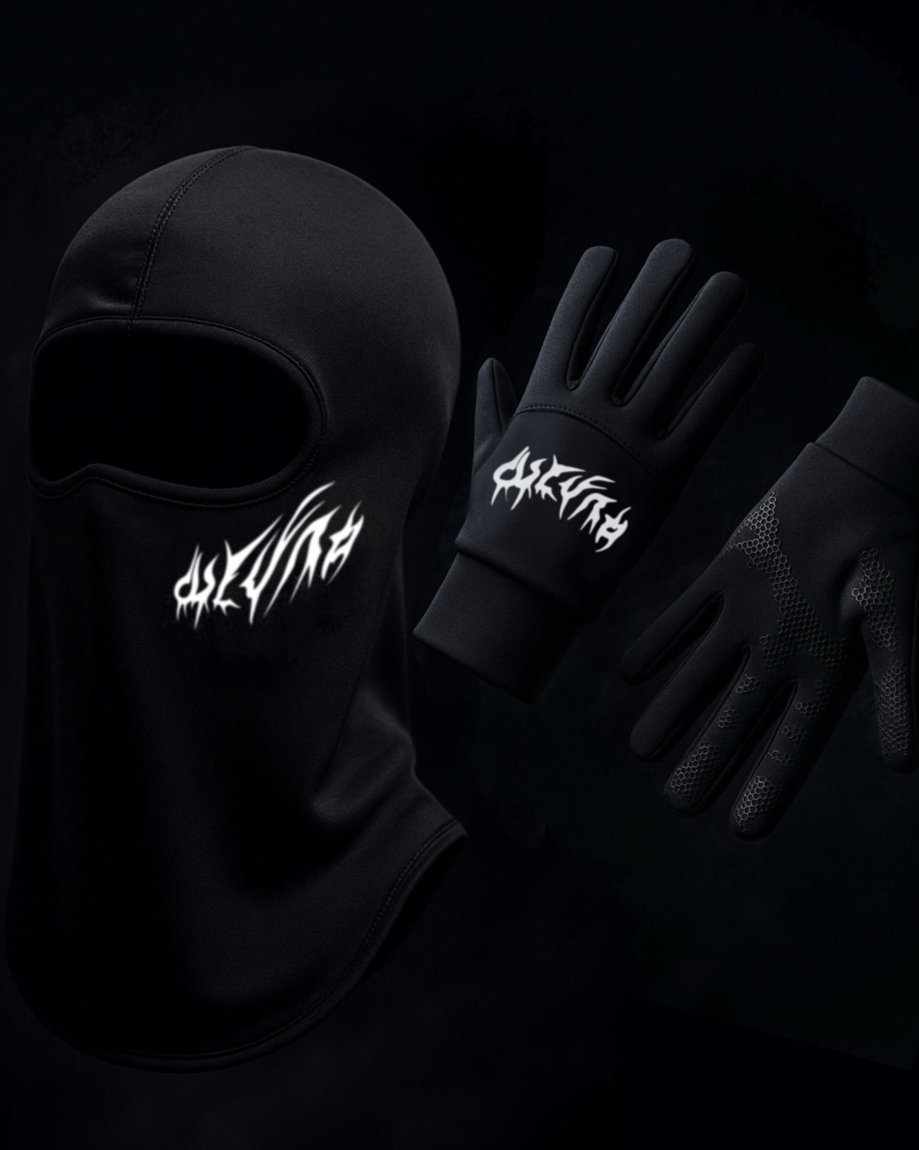Tissu technique, noir profond et logo blanc contrasté, pensée pour l’hiver et l’univers nocturne.